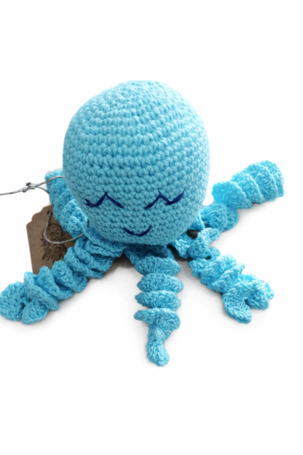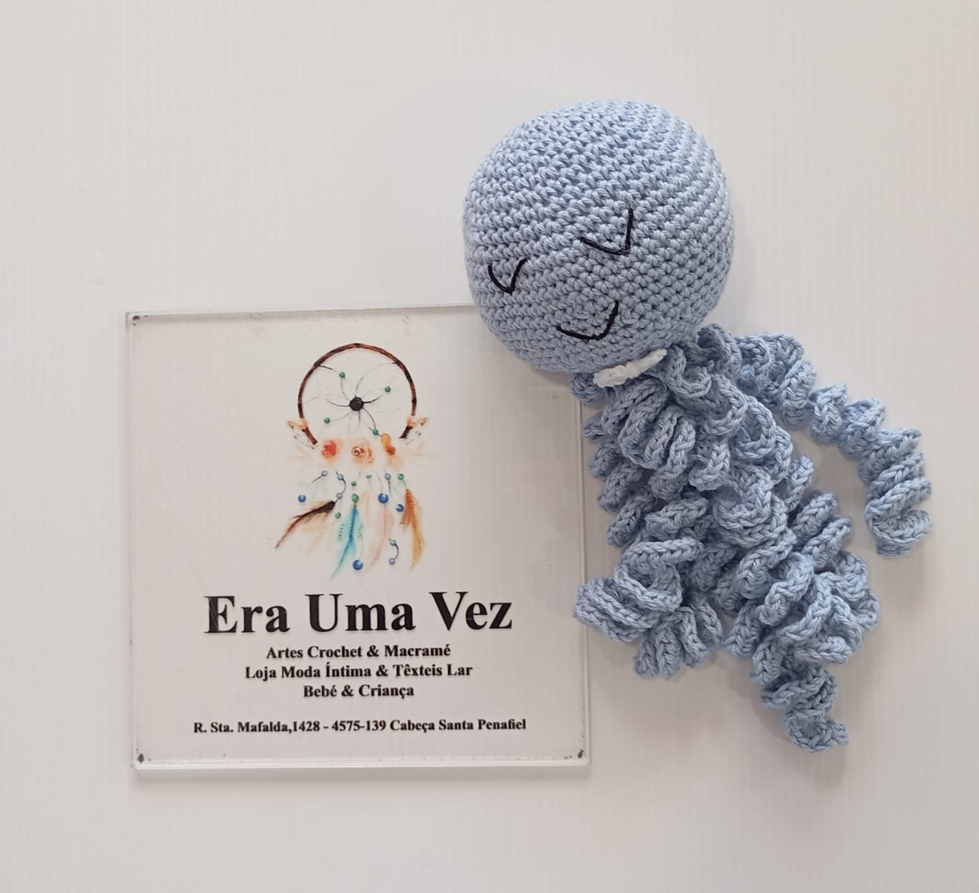 Encantador polvo em amigurumi, cuidadosamente confeccionado à mão com materiais macios fio algodão e de alta qualidade, ideal para recém-nascidos. Seu toque suave e formato acolhedor proporcionam conforto e sensação de segurança ao bebê, remetendo ao ambiente uterino.