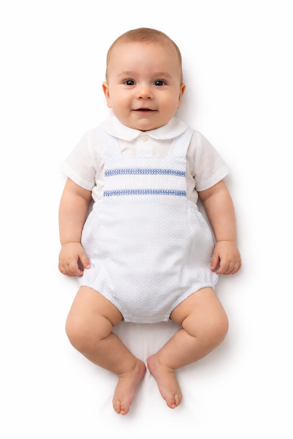 Perfeito para batizados, festas e cerimónias, este conjunto elegante combina uma jardineira com uma camisa de manga curta, garantindo conforto e estilo ao seu bebé.