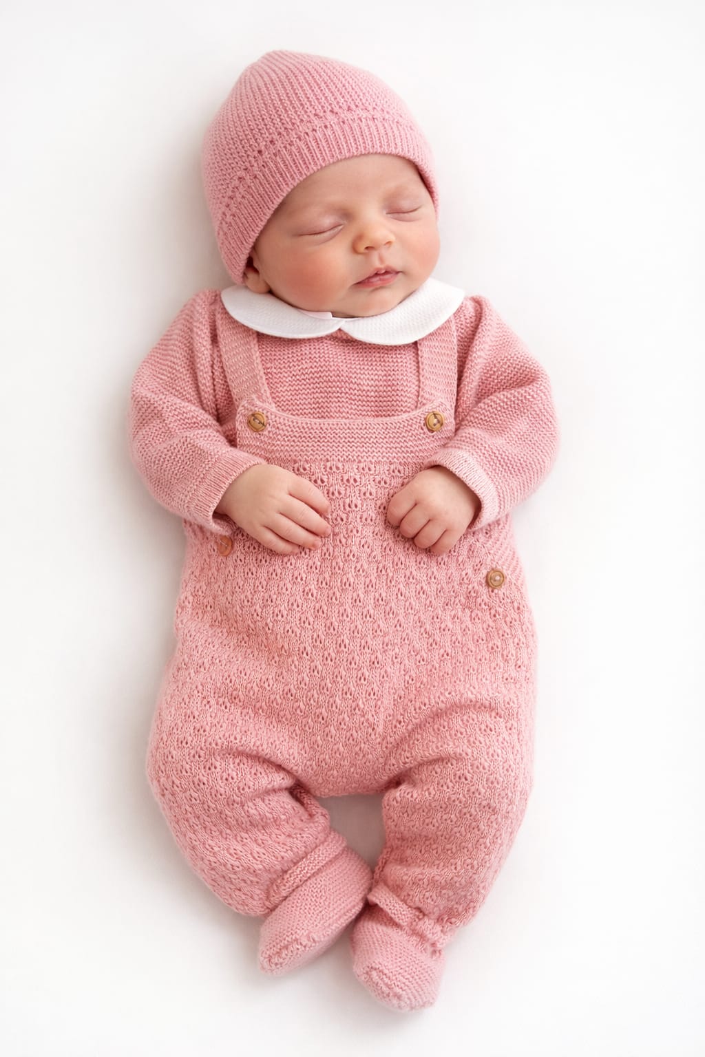 Bebé a dormir vestido com roupa de malha rosa
