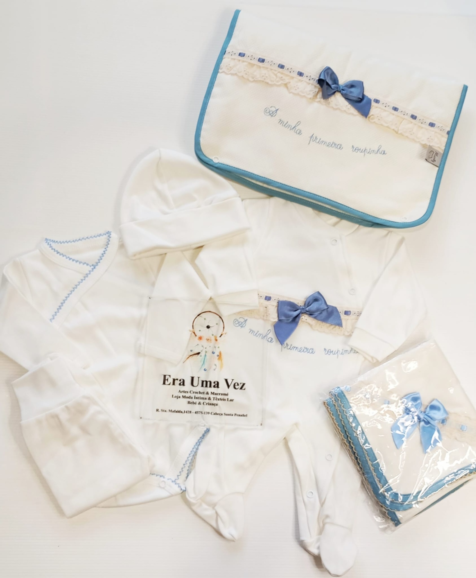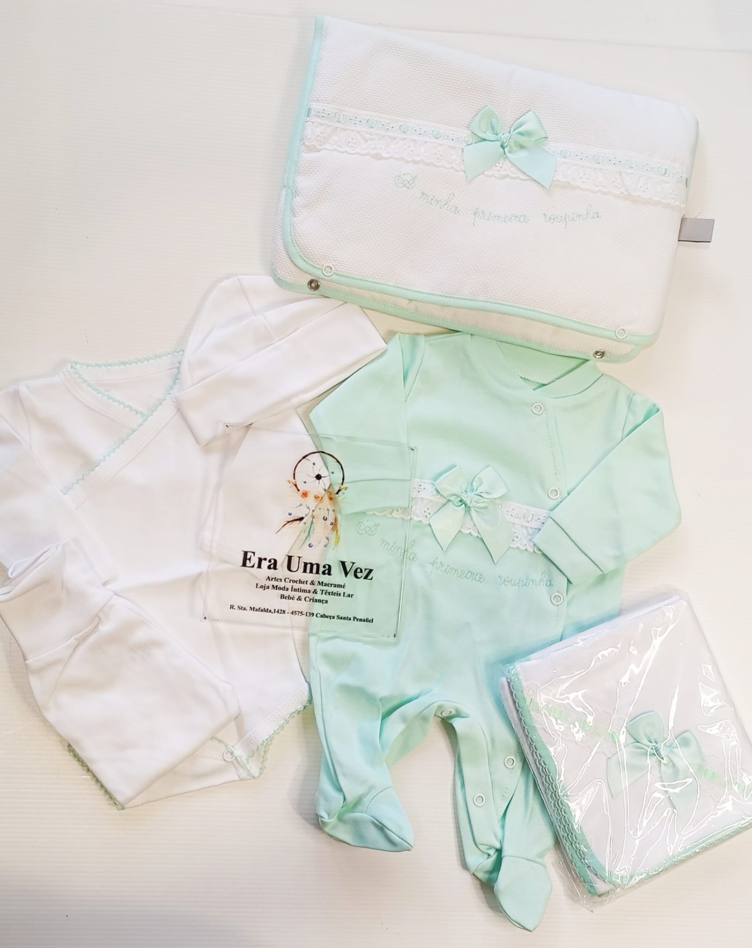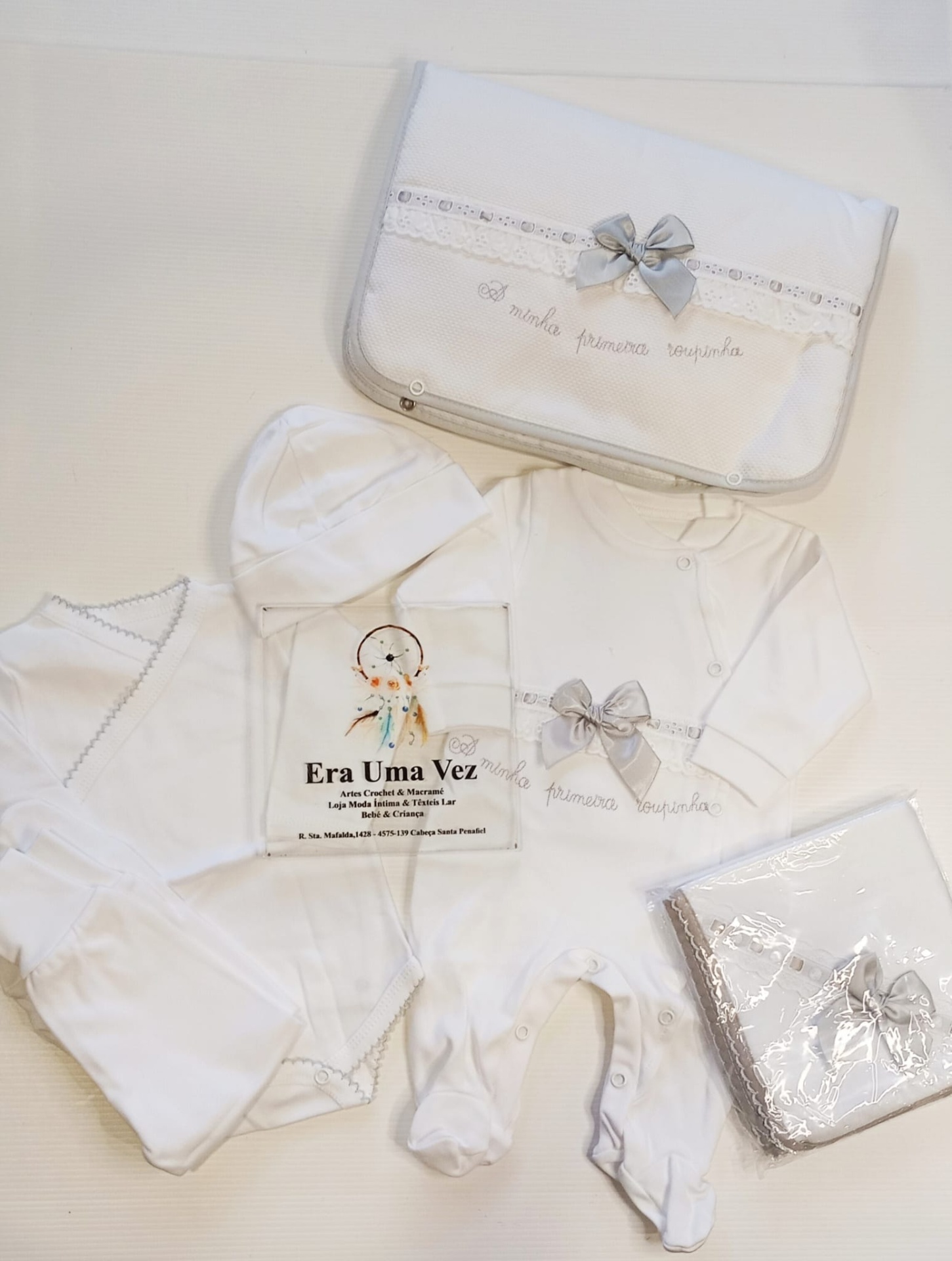 Prepare com carinho a chegada do seu bebé com este delicado conjunto de primeira roupinha. Confeccionado em algodão macio, proporciona conforto e suavidade à pele sensível do recém-nascido. Um conjunto prático e encantador, ideal para levar na mala da maternidade ou para oferecer como presente especial.