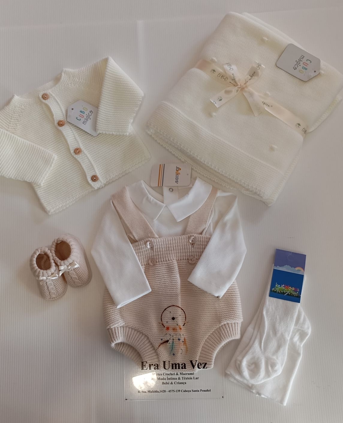 Conjunto saída maternidade menino inclui :manta malha, fofo ,bodie gola,