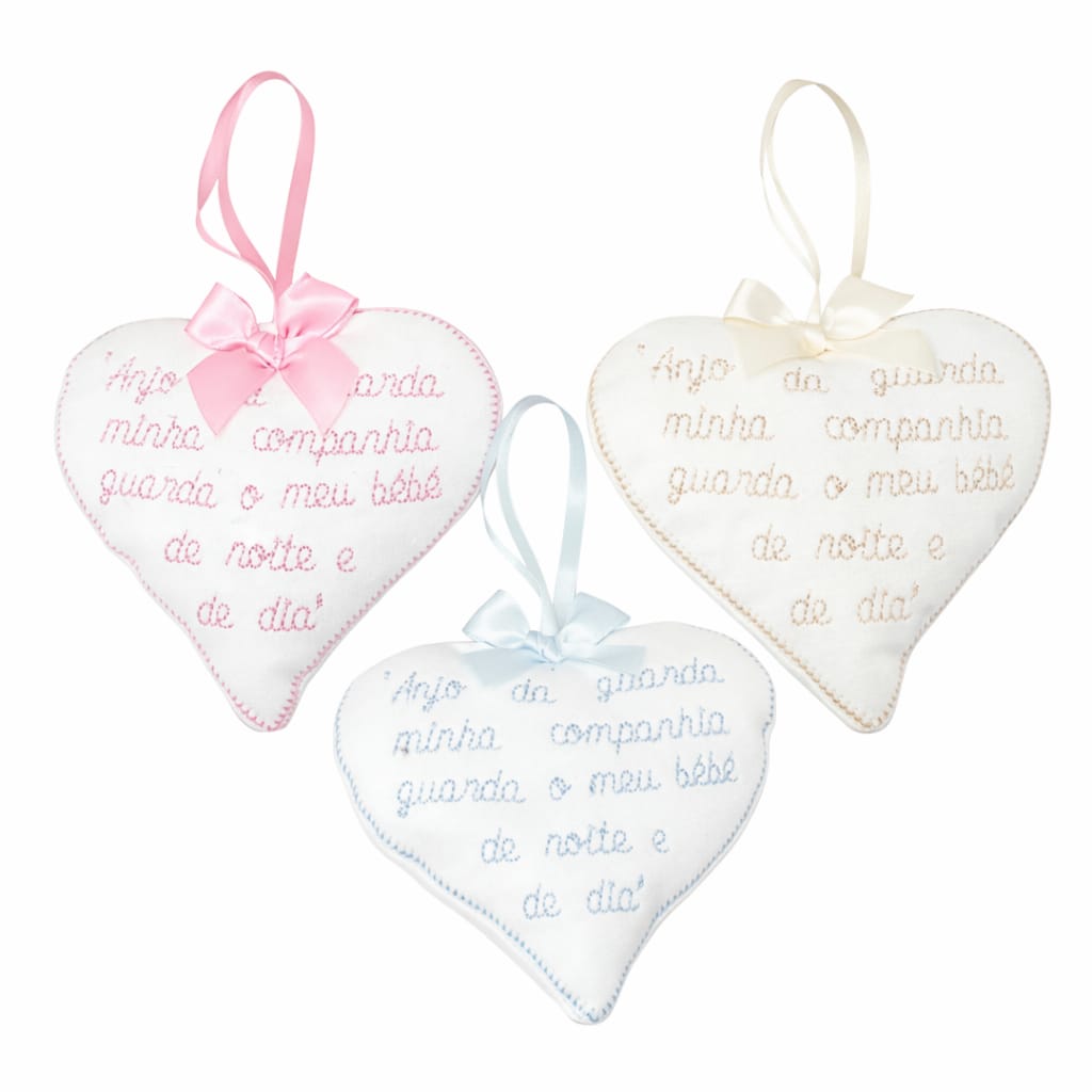 O coração com oração do Anjinho da Guarda é perfeito para colocar junto ao berço, criando um ambiente acolhedor, tranquilo e cheio de amor.