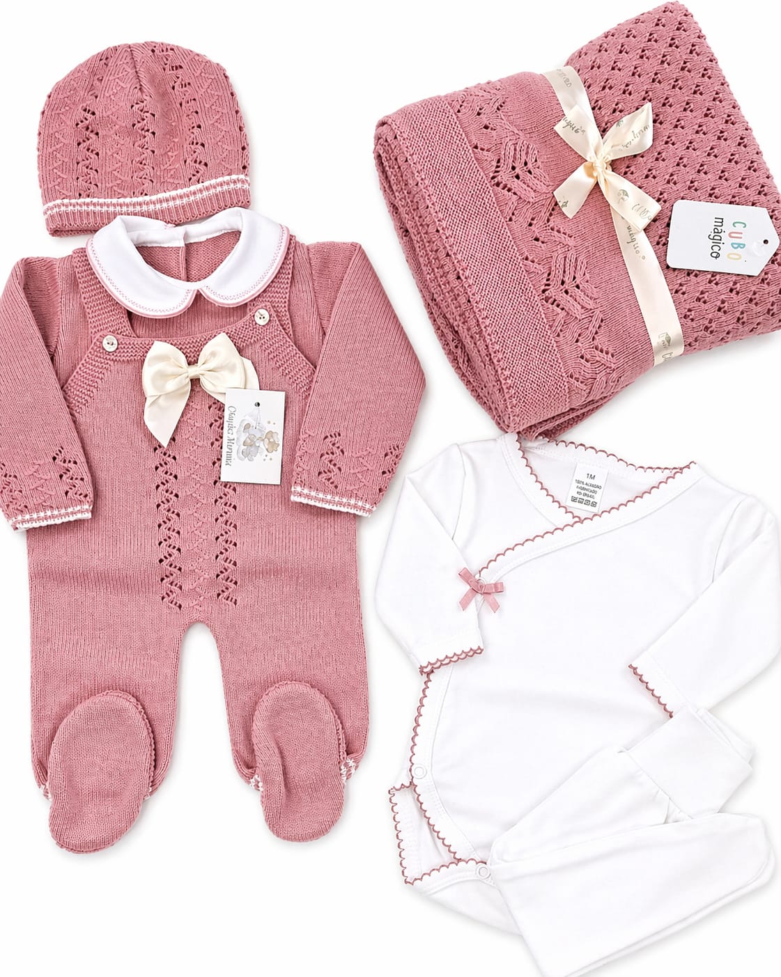 Perfeito para quem procura uma saída de maternidade completa, um conjunto em malha para recém-nascido ou uma opção elegante e confortável para os primeiros momentos especiais 🤍