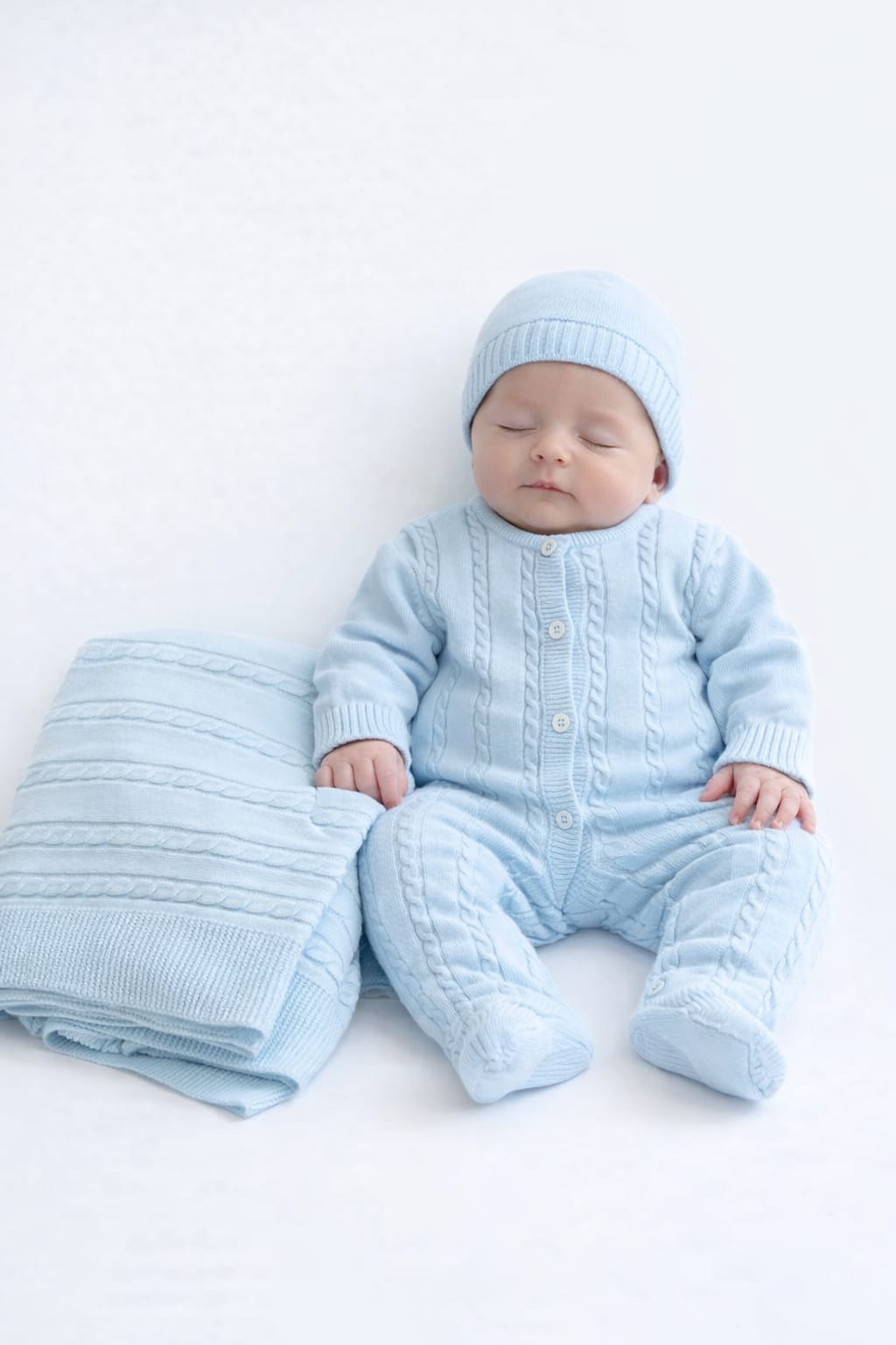 Conjunto de Saída de Maternidade em Malha com Manta, Babygrow, Gorro e Carapins