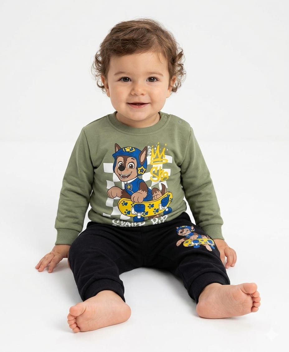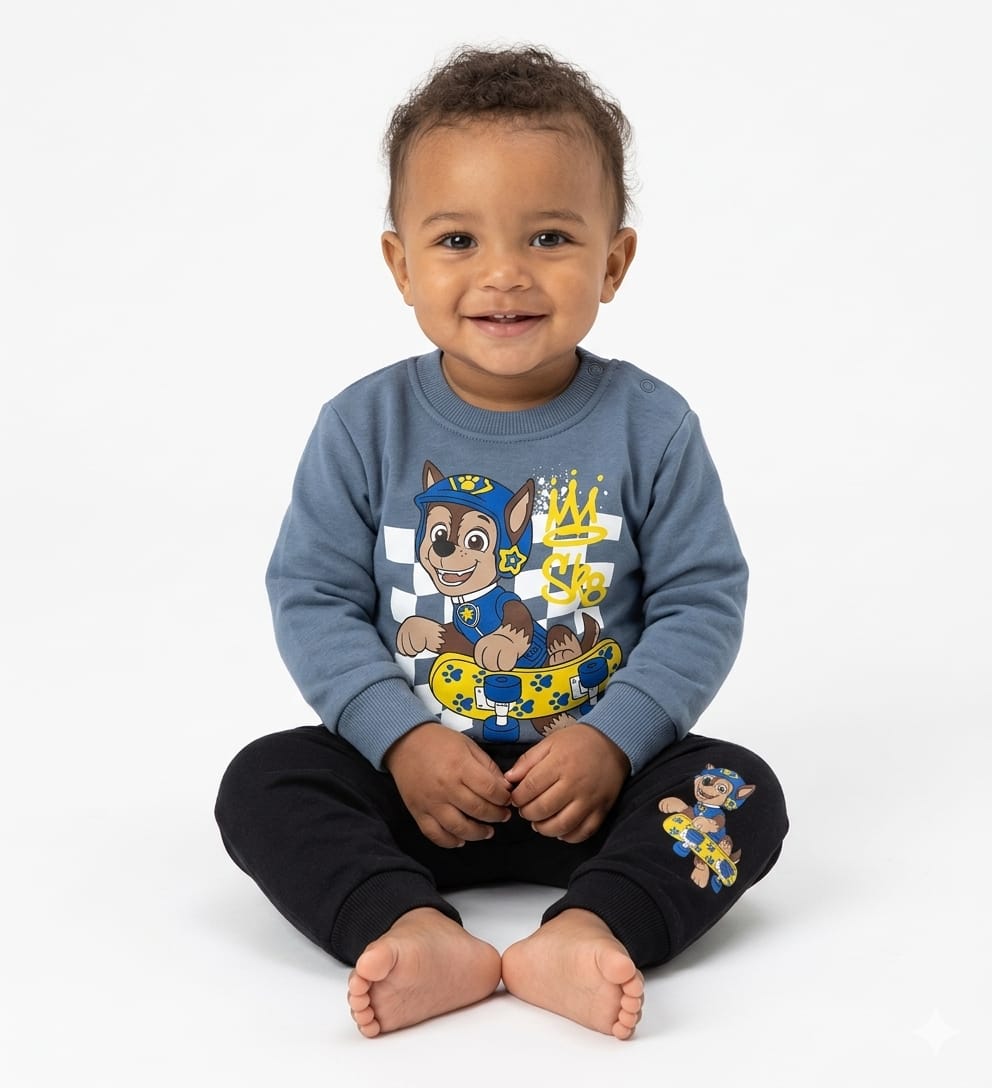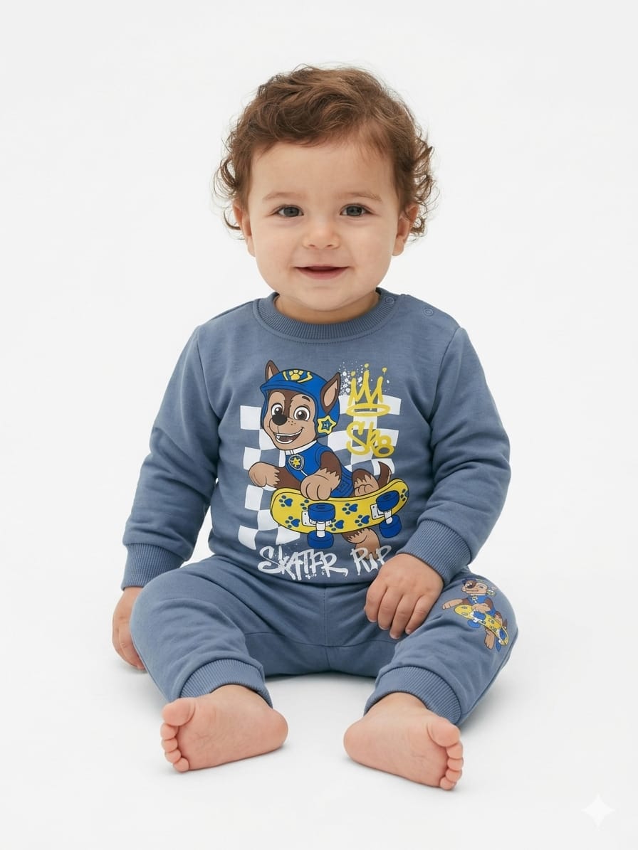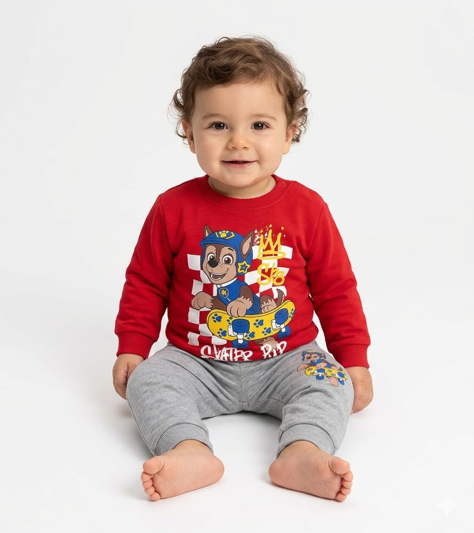 Conjunto infantil composto por camisola de manga comprida e calça com punhos, ideal para proporcionar o máximo conforto no dia a dia.