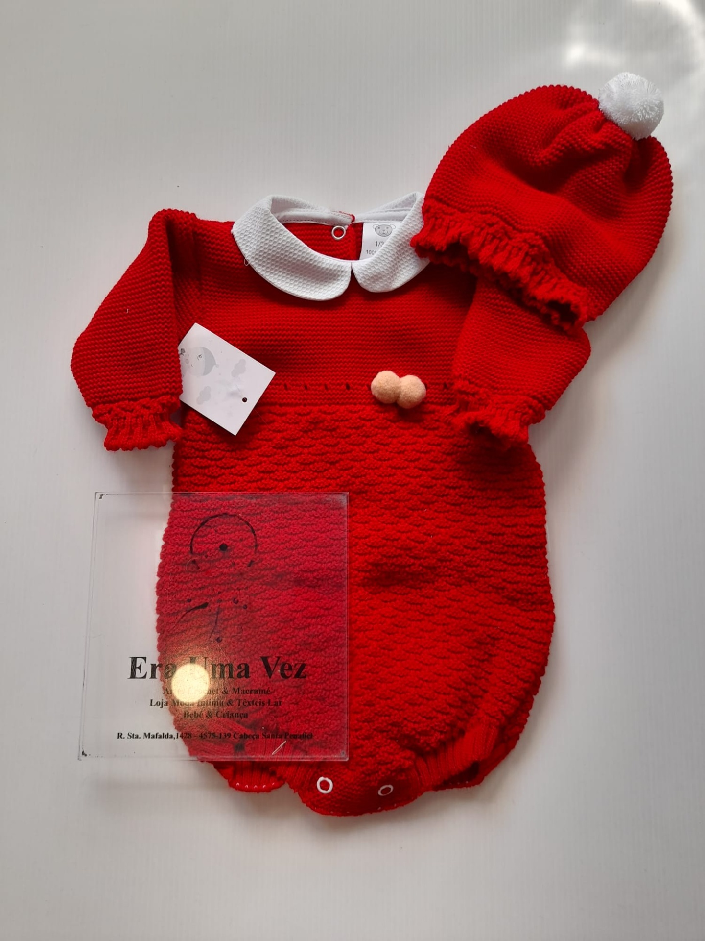 Conjunto de bebé  de malha com 2 peças: fofo com gola e gorro