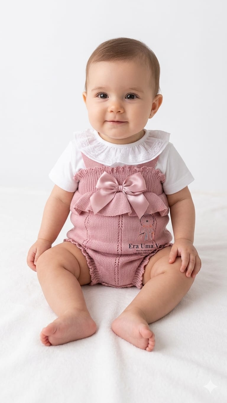 Fofo Malha com folho e Laço + Body com Gola Prepare o primeiro look do seu bebé com toda a doçura e conforto que este momento especial merece 💛 A nossa saída de maternidade é composta por um fofo em malha delicada acompanhado por um body com gola em algodão , criando um visual clássico, elegante e intemporal.