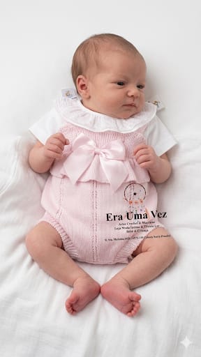 ✨ Detalhes do produto: Conjunto em malha com renda e laço Body com gola em algodão Tecido suave e confortável Ideal para saída de maternidade