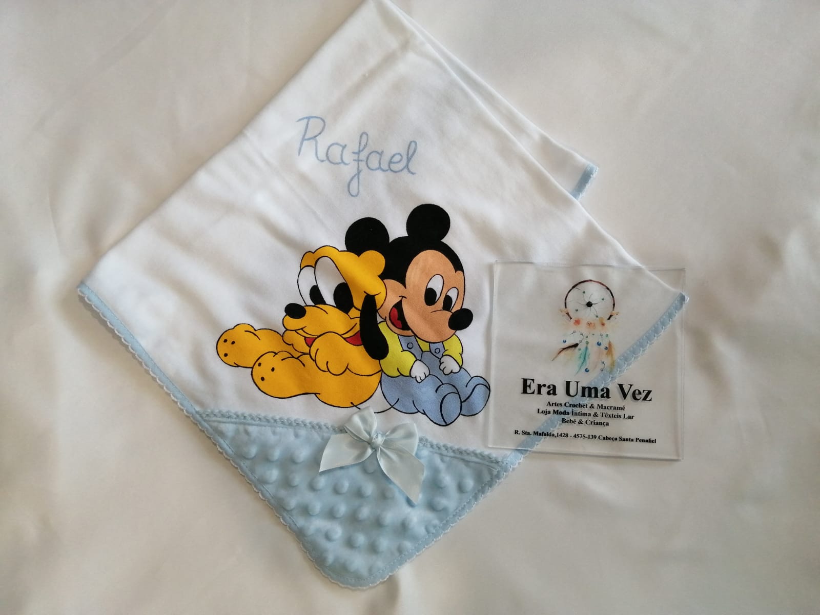 🎨 Fralda personalizada com pintura à mão e nome do bebé, com possibilidade de escolher o desenho ao seu gosto.