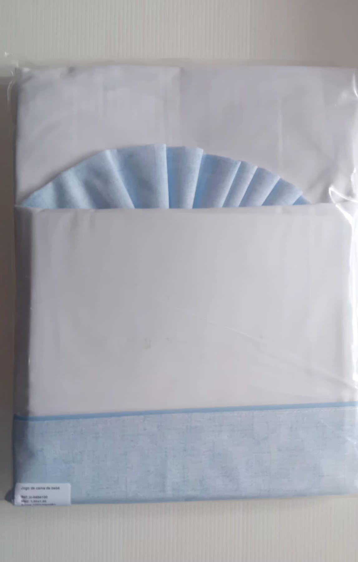 Jogo de cama de bebé branco com detalhe azul embalado