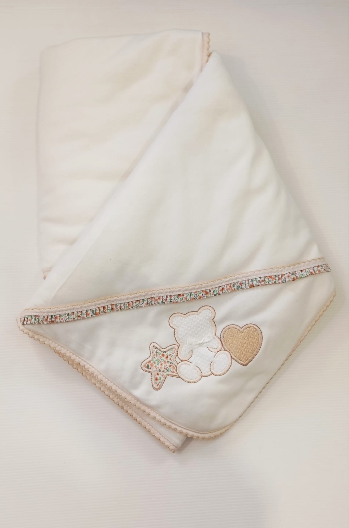 Manta delicada e confortável, ideal para envolver o bebé com suavidade e segurança. Feita em tecido 100% algodão, é macia, respirável e perfeita para a pele sensível do bebé. O detalhe do desenho bordado torna a manta ainda mais especial, sendo uma ótima opção para o enxoval ou para oferecer como presente.