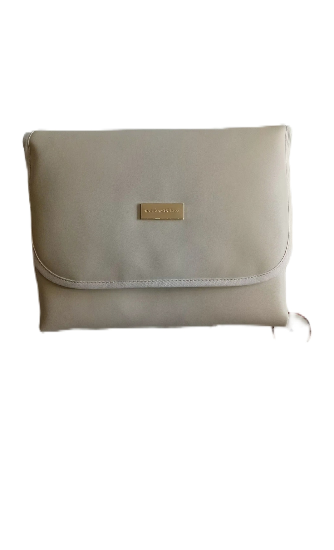 Apresentamos o elegante Muda-Fraldas em pele sintética “Made with Love”, perfeito para mudar o seu bebé com todo o conforto, higiene e praticidade, em qualquer lugar.