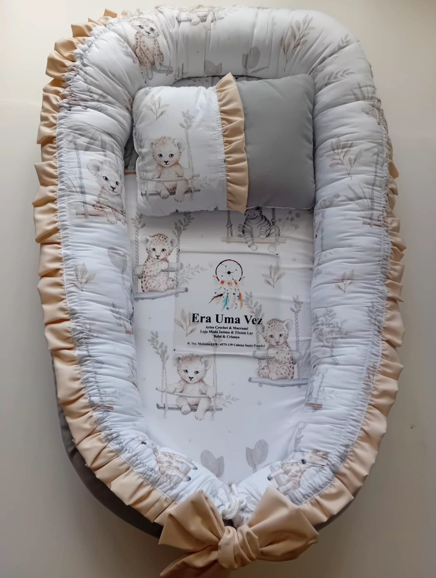 Os ninhos são feitos à mão por encomenda, com atenção a cada detalhe e personalização ao seu gosto.