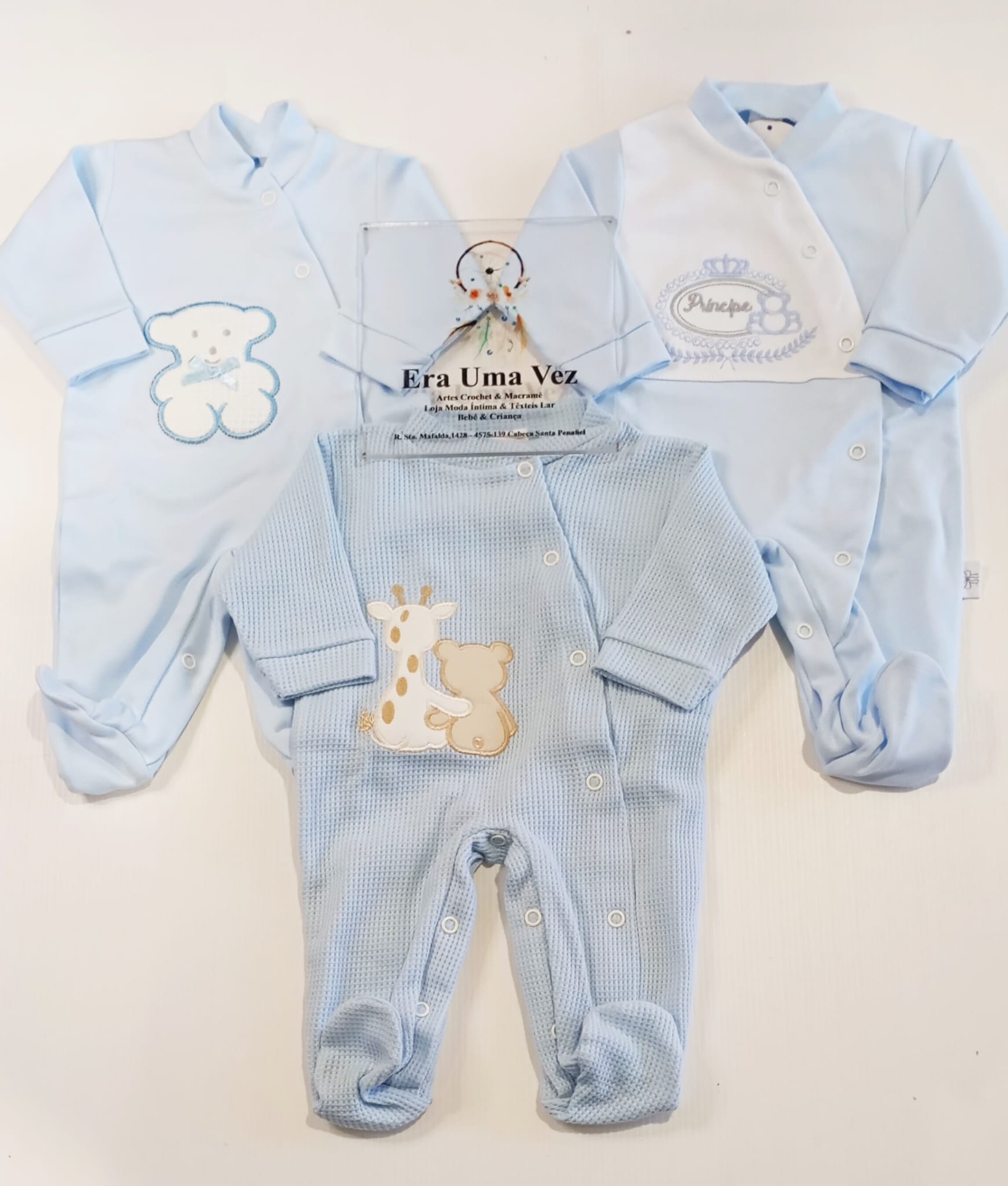 Conjunto de 3 babygrows práticos e confortáveis, ideais para o dia a dia do seu bebé. Confeccionados em algodão macio, garantem suavidade e bem-estar na pele delicada.