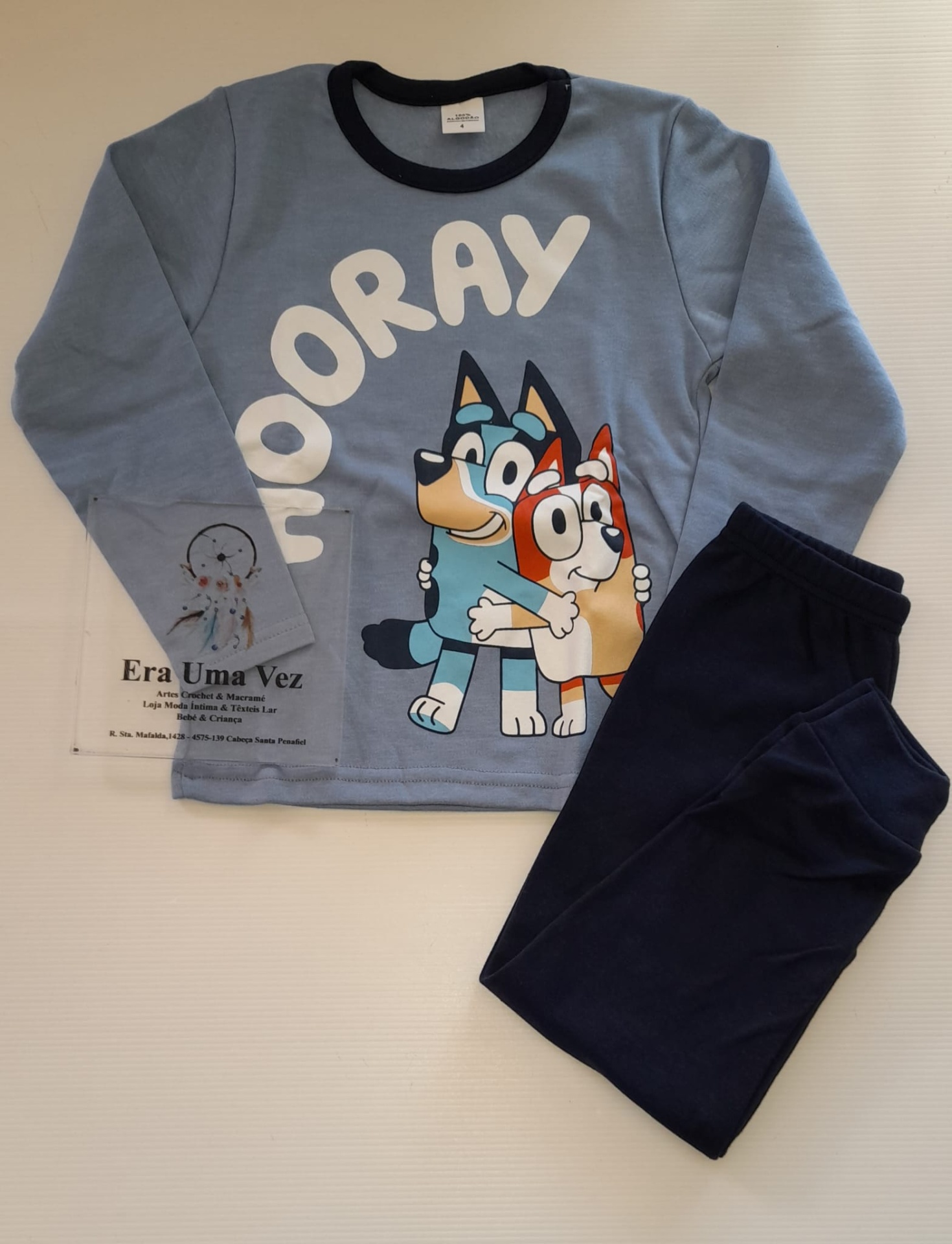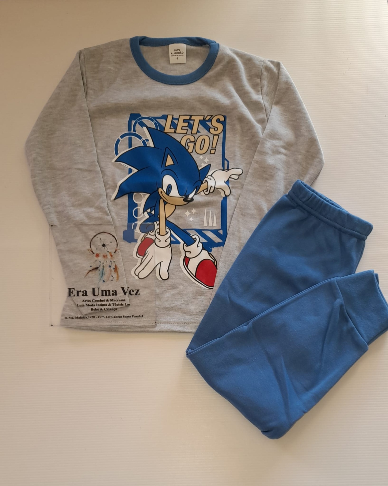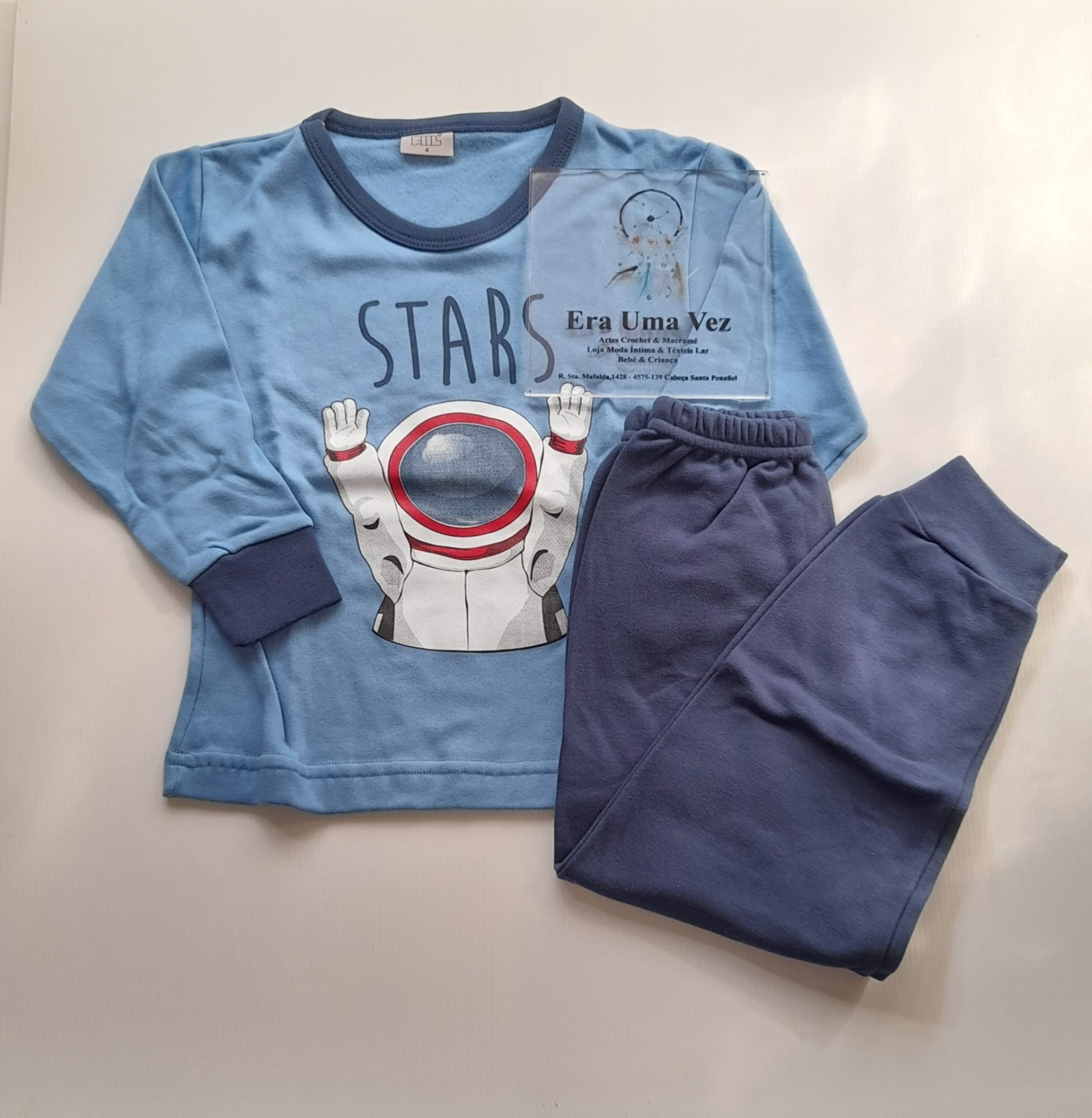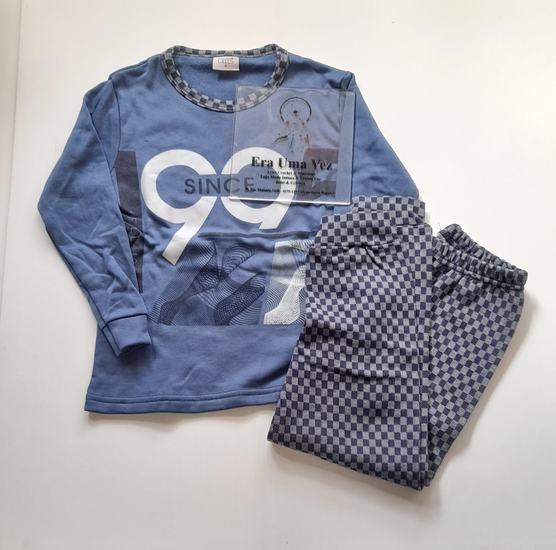 Pijama em tecido cardado com camisola de manga comprida estampada e calças estampadas com punhos, para menino.