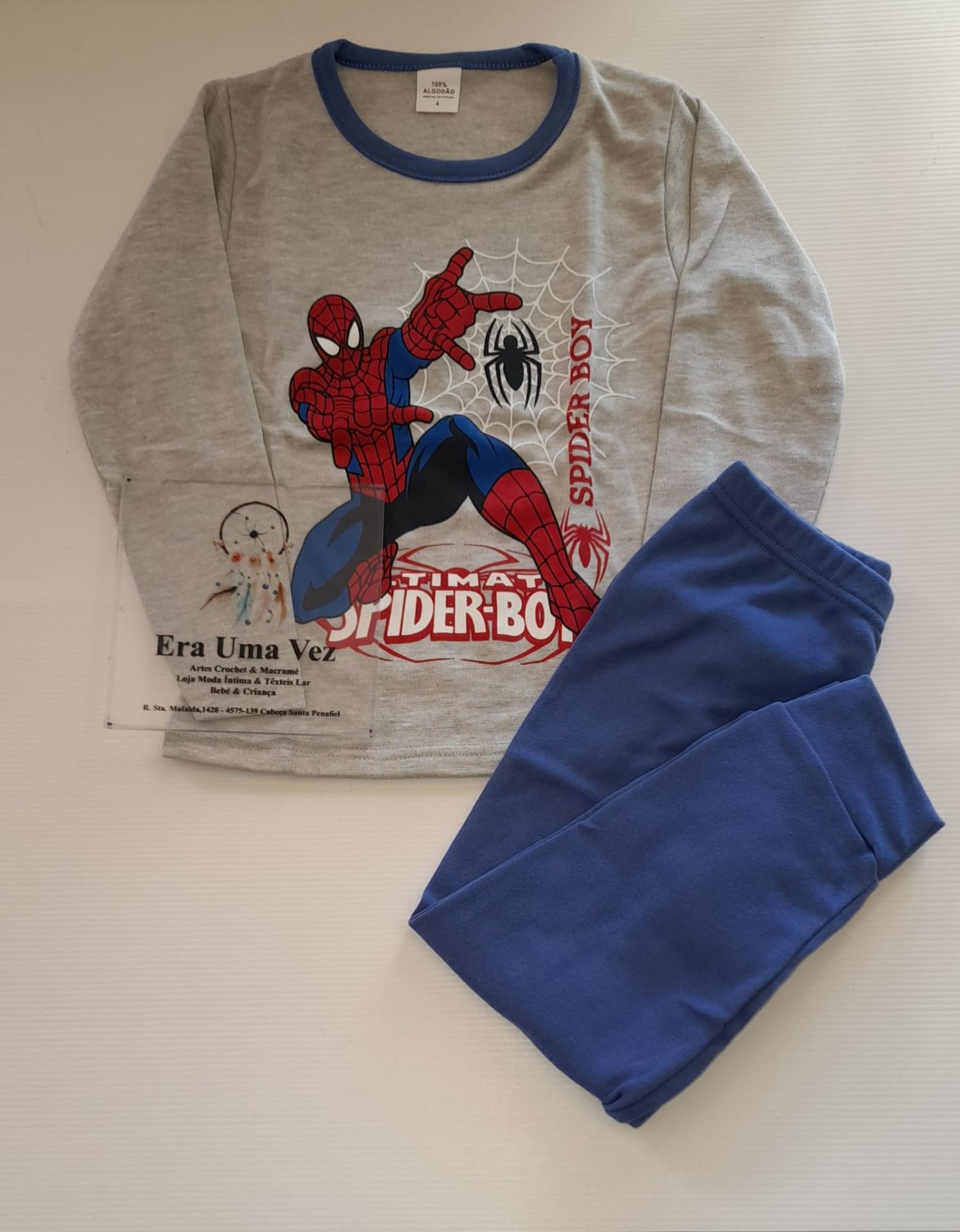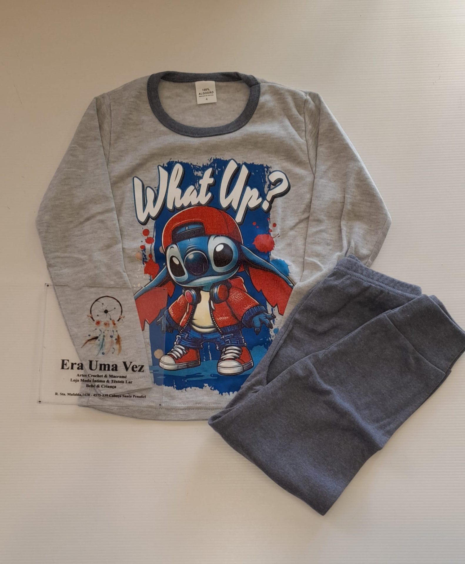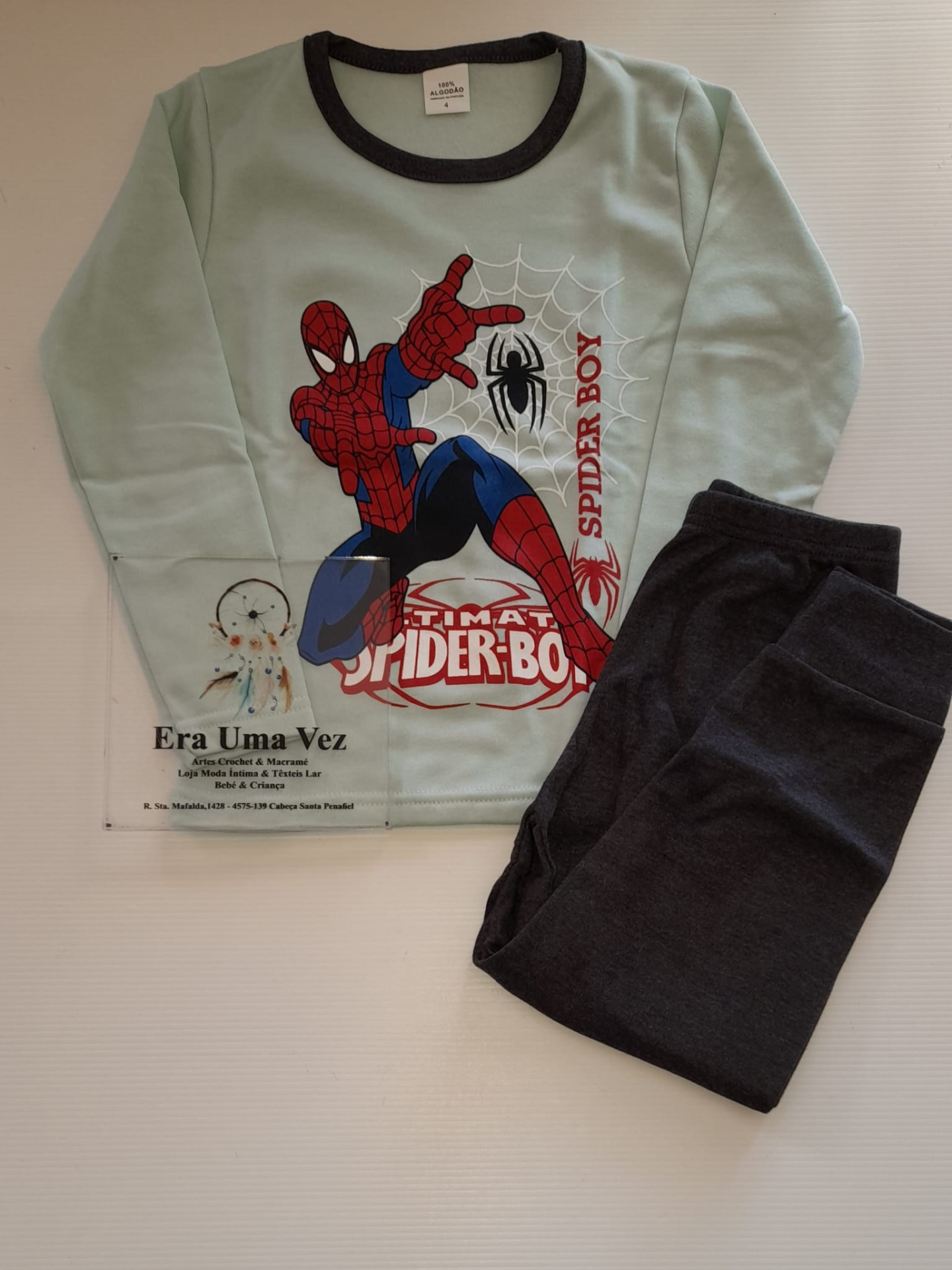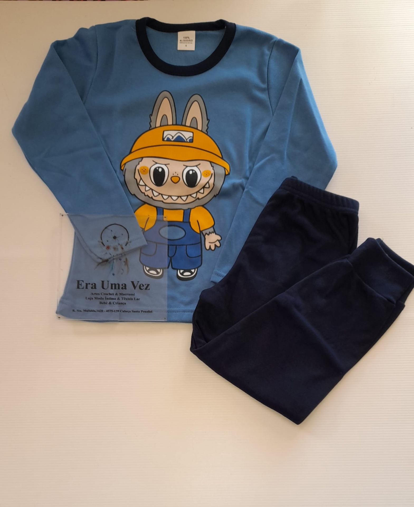 Pijama em tecido cardado com camisola de manga comprida estampada e calças estampadas com punhos, para menino.