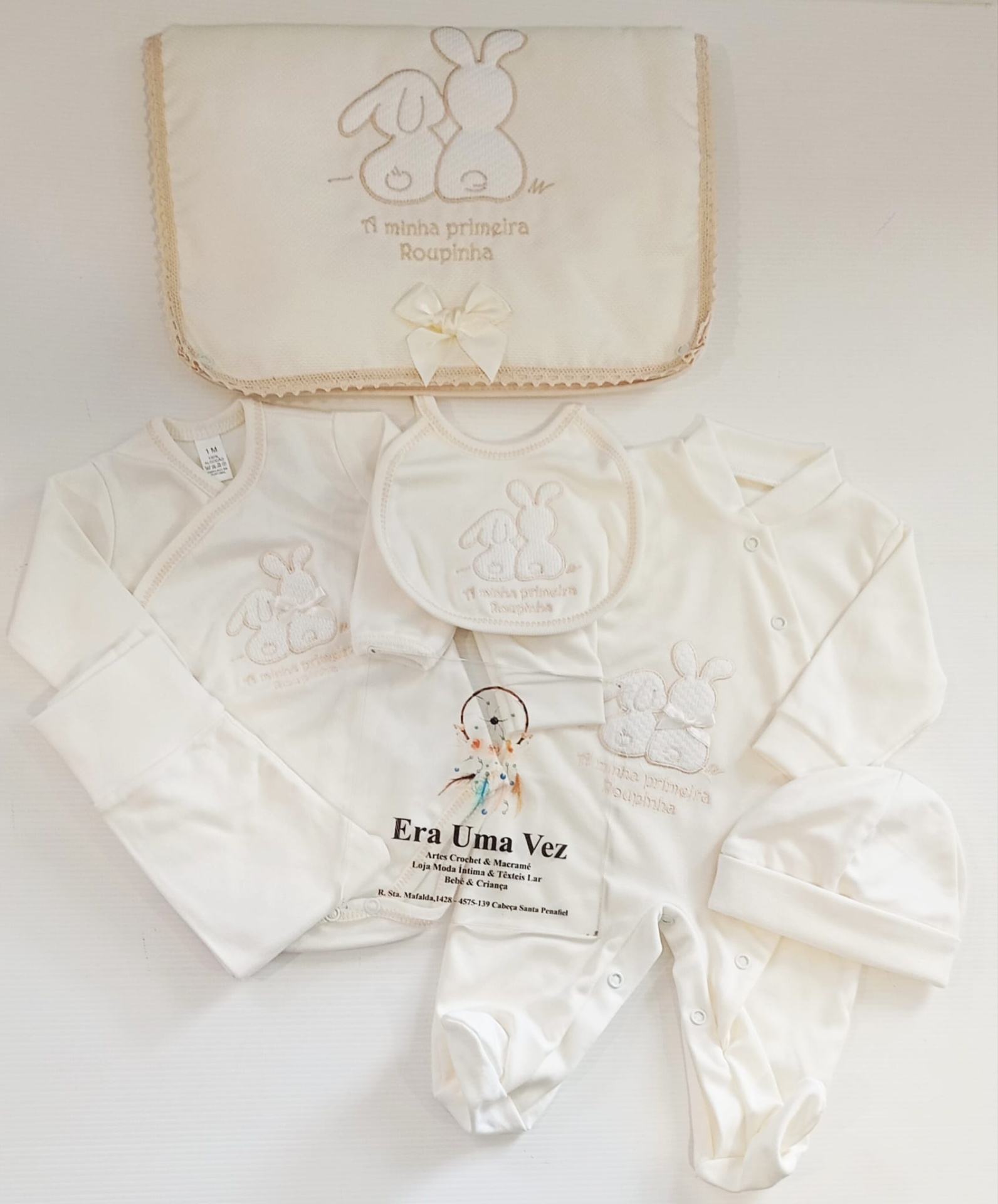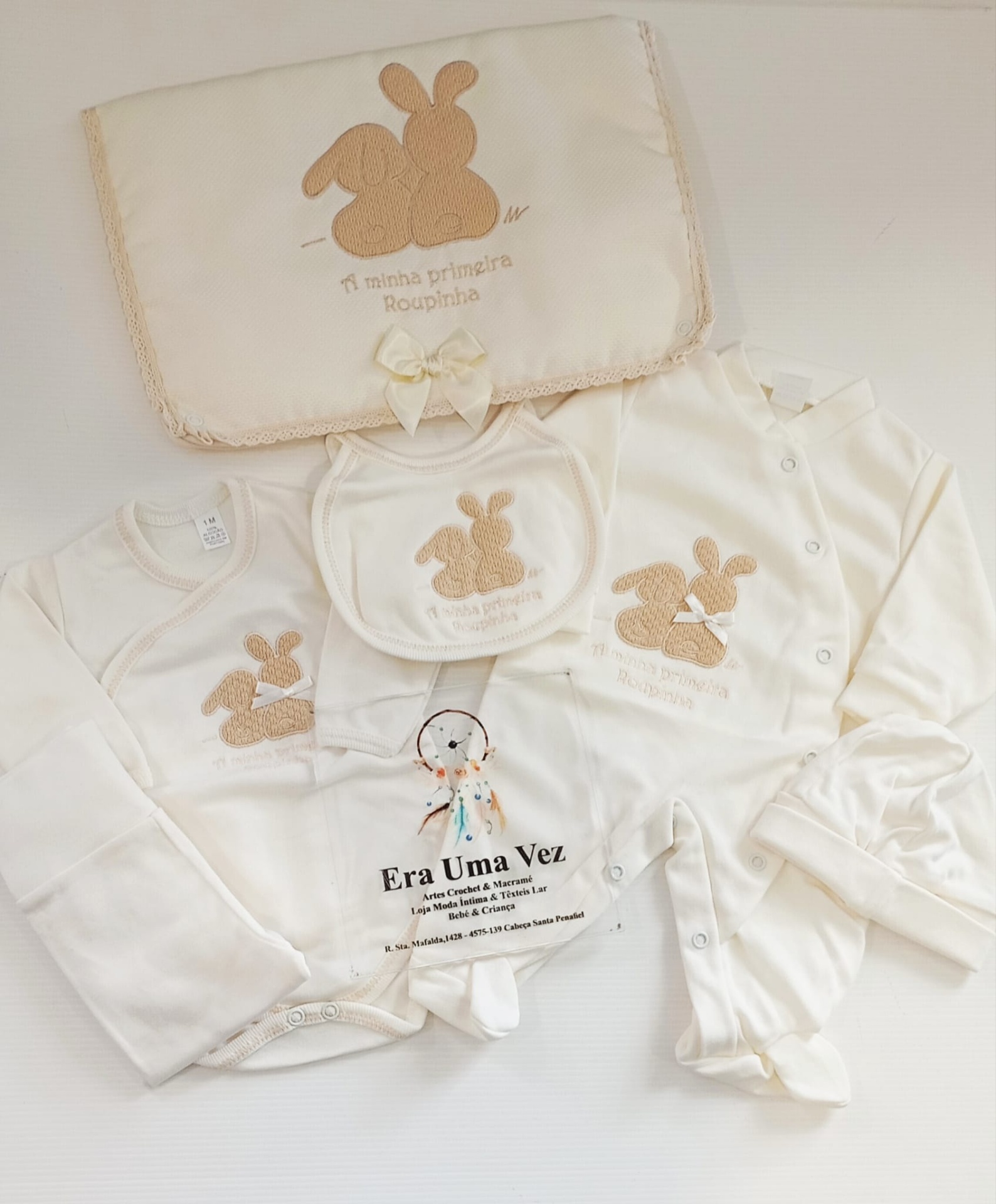 Home Bebé e Complementos Primeira roupinha algodão Coelhos Primeira roupinha algodão Coelhos Cor pérola camel 1 nome bordado Gorro - 5,00 € 1 nome bordado babygrow - 5,00 € 1 nome bordado body - 5,00 € 1 nome bordado saco primeira roupinha - 5,00 € 1 nome bordado calça - 5,00 € 1 nome bordado babete - 5,00 € 32,99 € Desconto de %. Comprar Contactar Adicionar à wishlist 👶 Conjunto Primeira Roupinha de Bebé Conjunto delicado e confortável, perfeito para a primeira roupinha do seu bebé ou para oferecer como presente especial. 🧺 Inclui 5 peças:• Bolsa primeira roupinha• Gorro e babete• Body trespasse• Calça• Babygrow 📏 Tamanho: Único (0–1 mês)🌿 Composição: 100% Algodão☀️ Estação: Primavera / Verão ✨ Personalização disponível:Possibilidade de bordar o nome do bebé nas peças. ⏳ Prazo para personalização:Cerca de 6 a 8 dias úteis para ficar pronto. Um conjunto suave, prático e cheio de carinho para os primeiros dias do seu bebé 💛 Marca Fabricado em Portugal Tags bebébabymaternidaderecém-nascidoenxoval bebéalgodãoazulbodieprimeira roupinharosaroupa bebéroupinhababygrowgorrobabete Características Partilhar