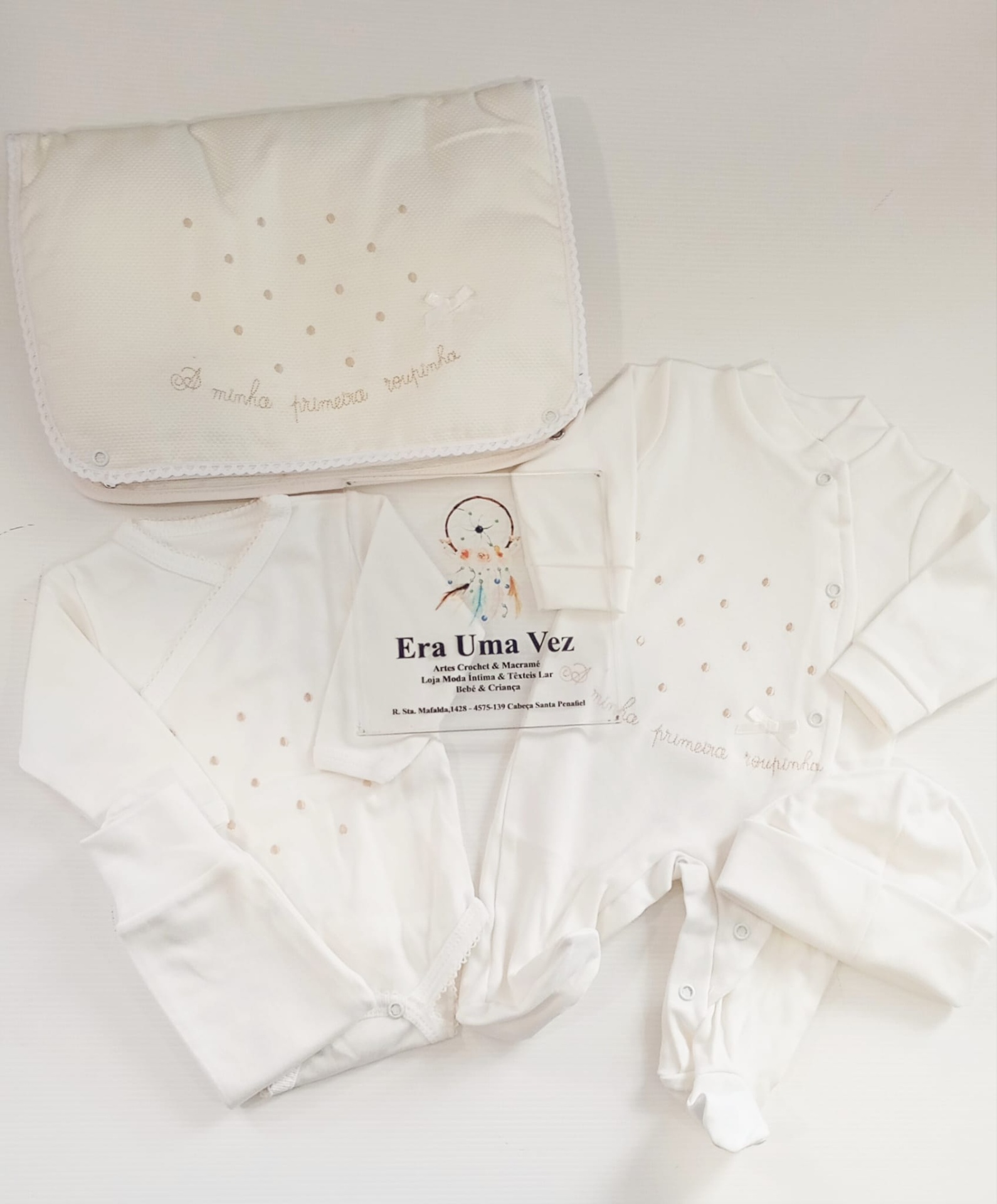 Home Bebé e Complementos Primeira roupinha algodão Primeira roupinha algodão Cor pérola 1 nome bordado Gorro - 5,00 € 1 nome bordado babygrow - 5,00 € 1 nome bordado saco primeira roupinha - 5,00 € 1 nome bordado body - 5,00 € 1 nome bordado calça - 5,00 € 32,99 € Desconto de %. Comprar Contactar Adicionar à wishlist 👶 Conjunto Primeira Roupinha de Bebé Conjunto delicado e confortável, perfeito para a primeira roupinha do seu bebé ou para oferecer como presente especial. 🧺 Inclui 5 peças:• Bolsa primeira roupinha• Gorro• Body trespasse• Calça• Babygrow 📏 Tamanho: Único (0–1 mês)🌿 Composição: 100% Algodão☀️ Estação: Primavera / Verão ✨ Personalização disponível:Possibilidade de bordar o nome do bebé nas peças. ⏳ Prazo para personalização:Cerca de 6 a 8 dias úteis para ficar pronto. Um conjunto suave, prático e cheio de carinho para os primeiros dias do seu bebé 💛 Marca Fabricado em Portugal Tags bebébabymaternidaderecém-nascidoenxoval bebéalgodãoazulbodieprimeira roupinharosaroupa bebéroupinhababygrowgorrobabete Características Partilhar