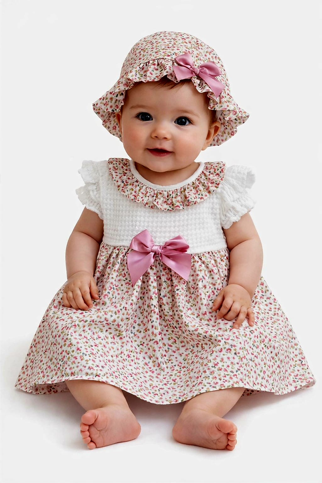 Vestido e chapéu florido para bebé, perfeito para manter o seu bebé confortável e cheio de estilo nos dias mais quentes. Um conjunto prático, delicado e ideal para o dia a dia ou para momentos especiais.