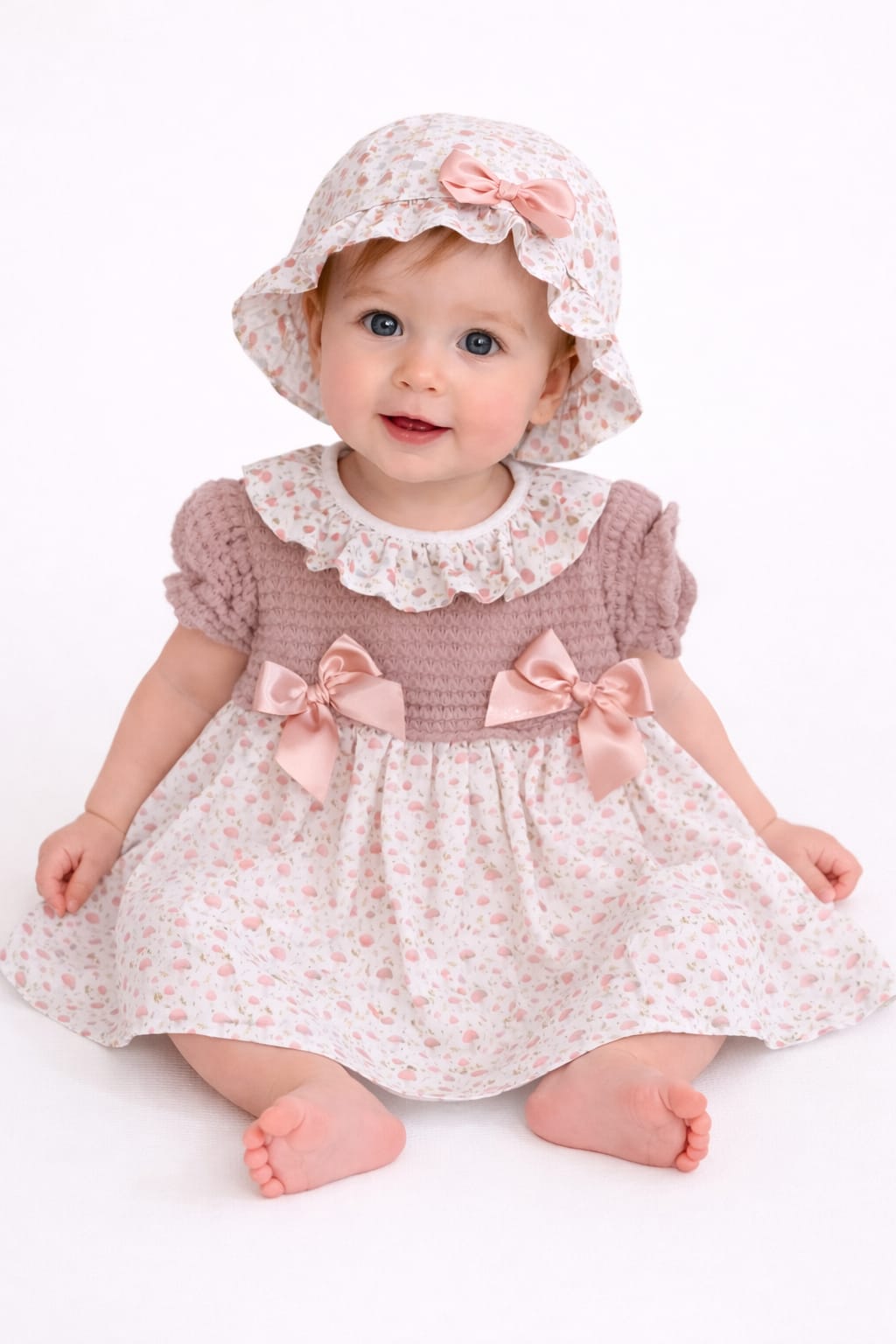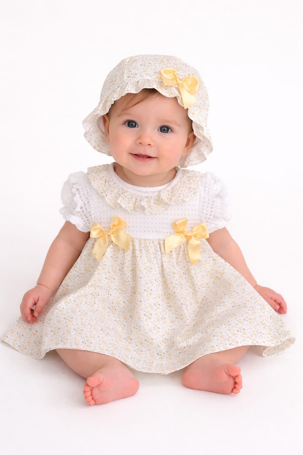 Vestido e chapéu florido para bebé, perfeito para manter o seu bebé confortável e cheio de estilo nos dias mais quentes. Um conjunto prático, delicado e ideal para o dia a dia ou para momentos especiais.